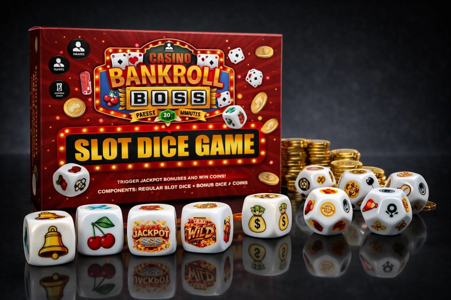 Compete in bankroll battles with other players over 10 thrilling rounds of slot dice. Roll the dice, hold the symbols you want to keep, and roll a second and final time. Collect diamonds, cash bags, and jackpots; trigger bonus slot dice, but beware of dynamite and bombs!